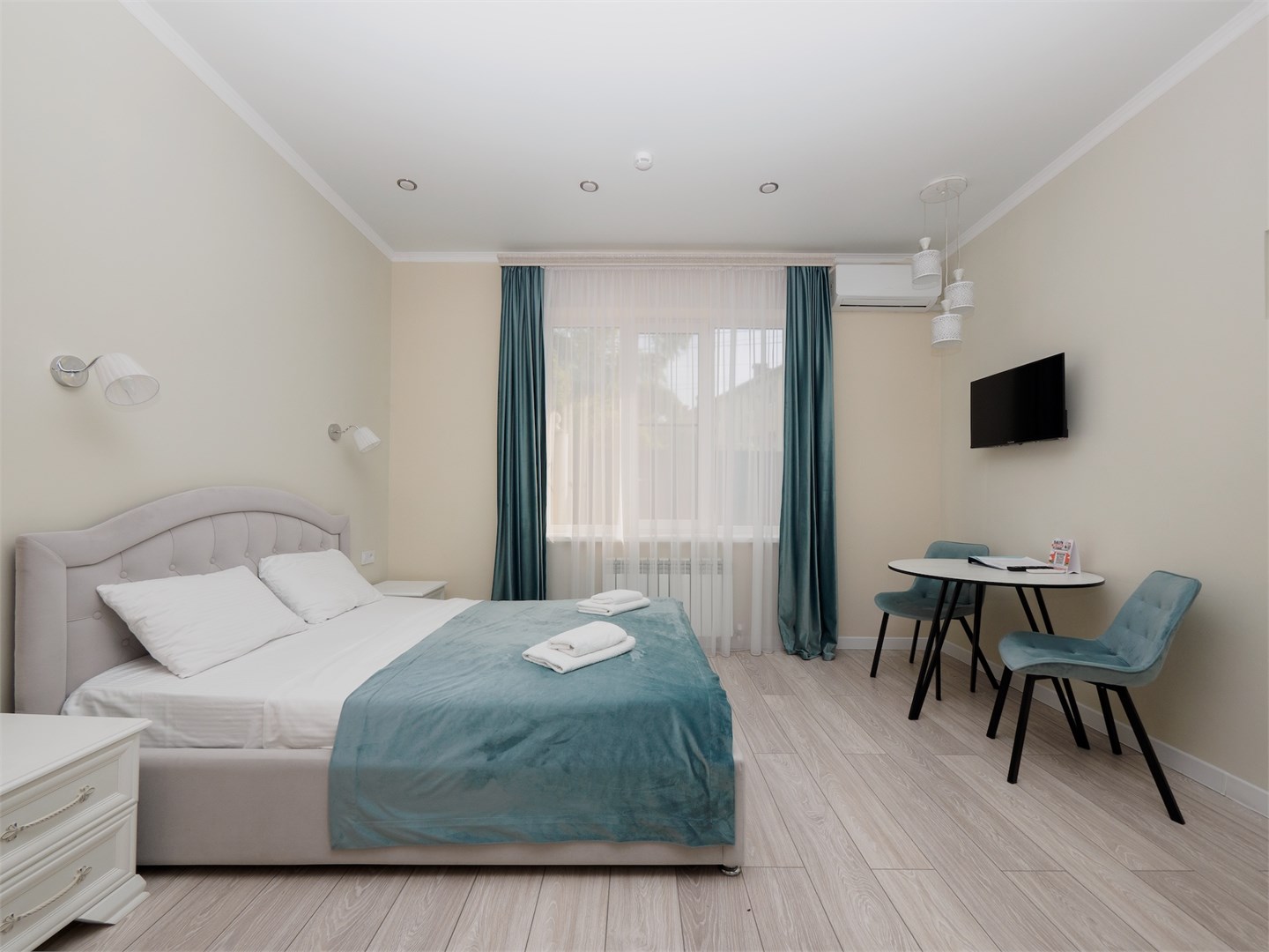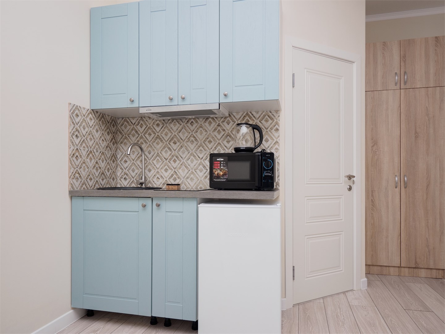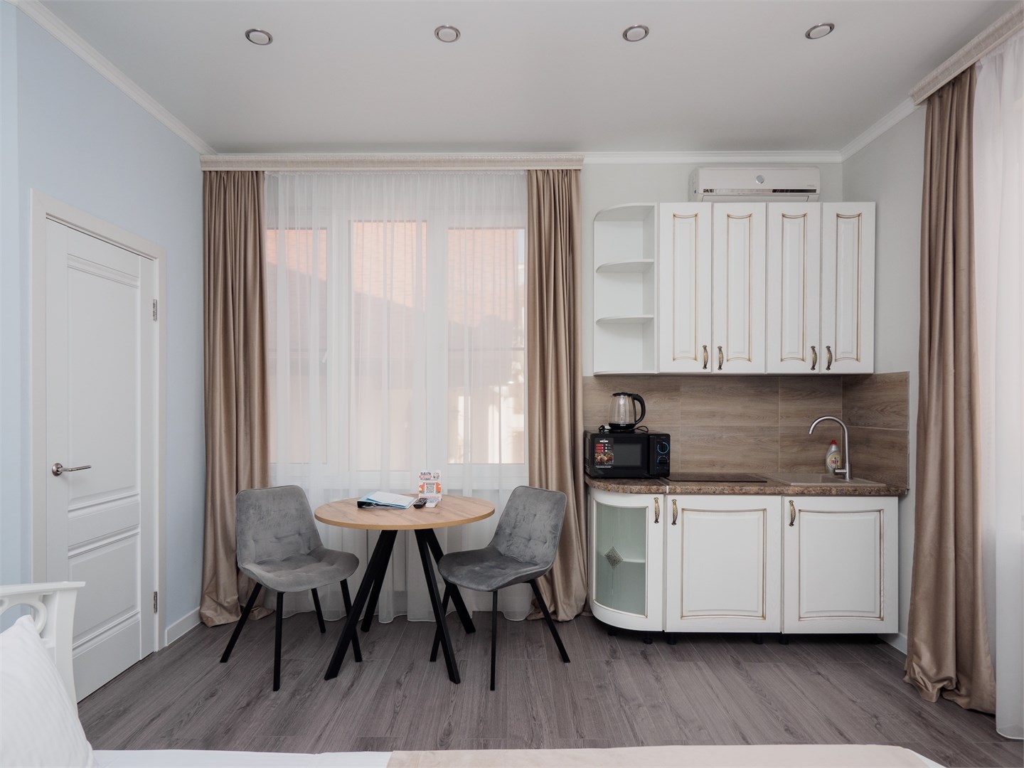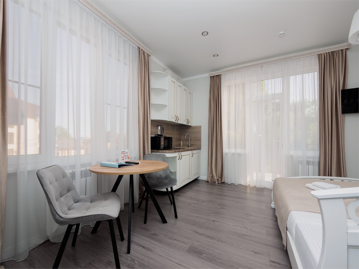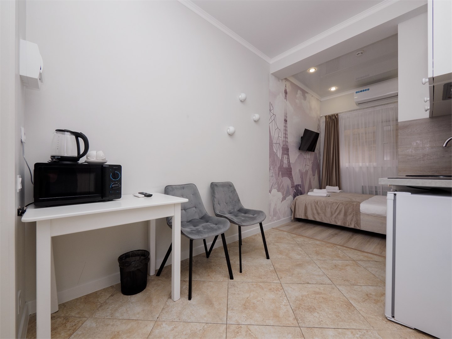 | Апартаменты Апартаменты Студия 2-местная | 23 кв.м. | 2 чел. | Мебель (зеркало, кровать двуспальная, кухонная мебель, прикроватные тумбочки, стол, стулья, шкаф), М... | |