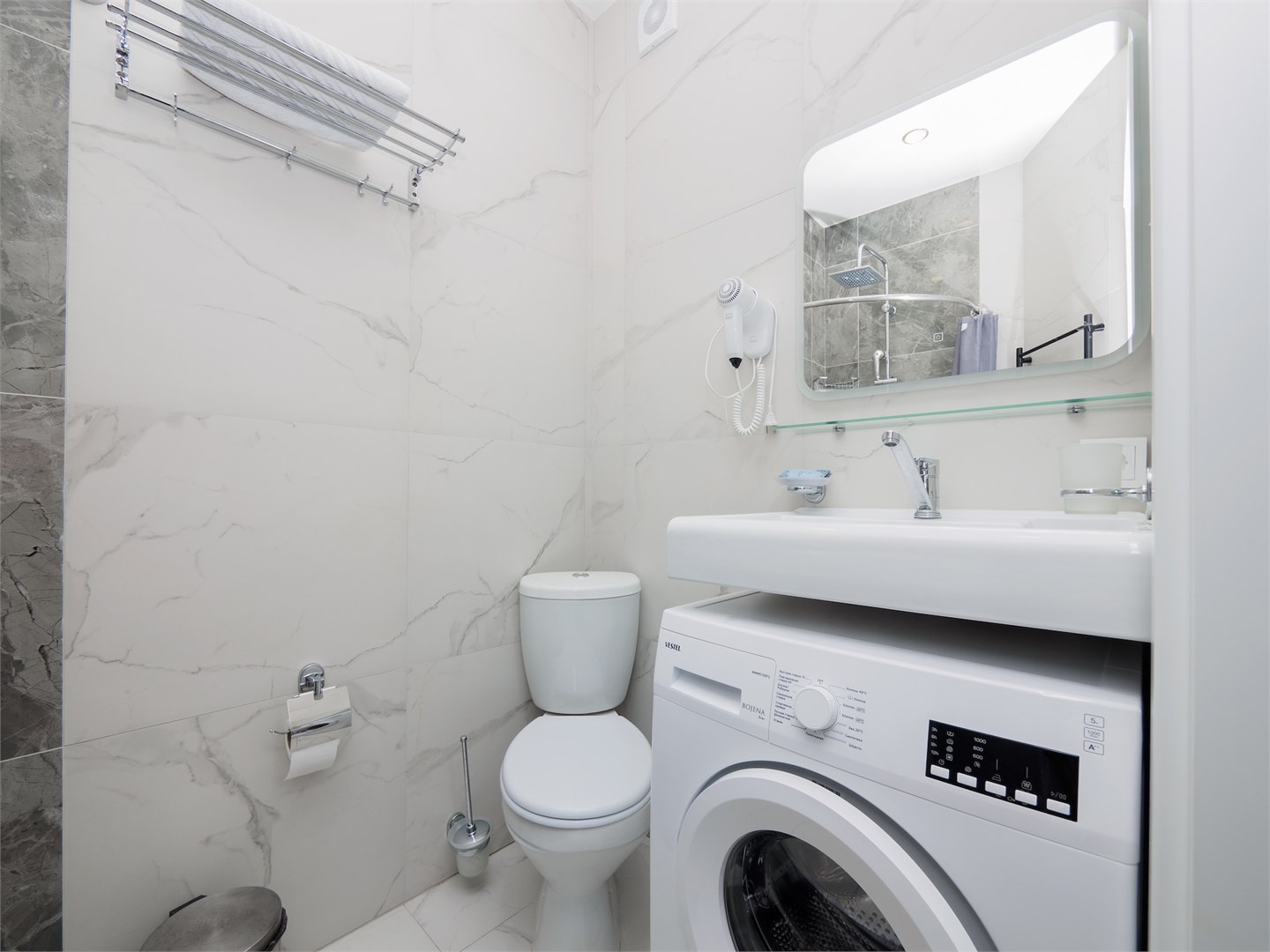 - Санузел: с душем, тапочки, туалетные принадлежности, фен