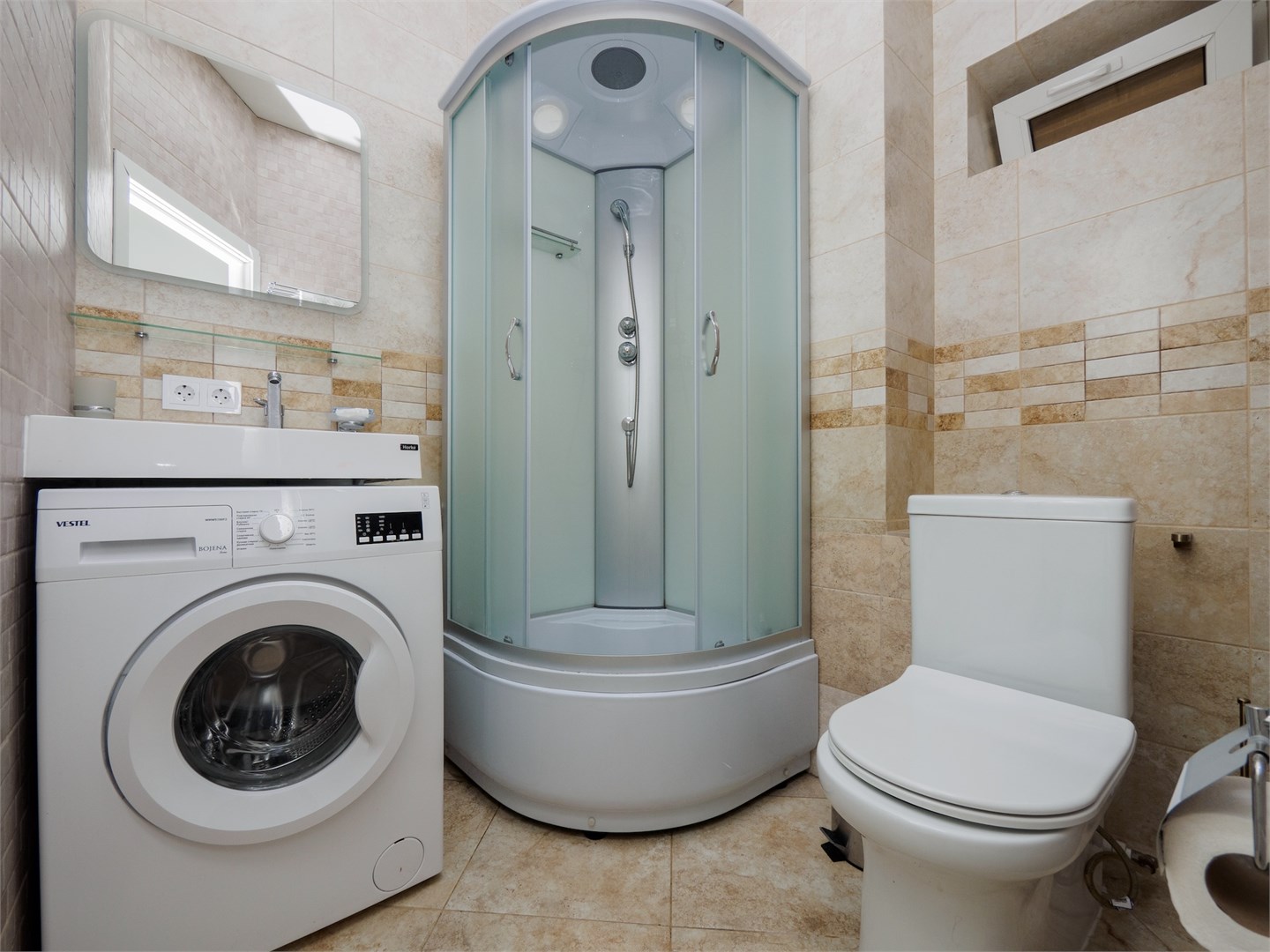 - Санузел: с душевой кабиной, тапочки, туалетные принадлежности, фен